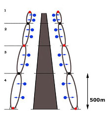 A runway bird detection and control system can be configured as follows: Each radar detection zone shown as an ellipse, will detect birds approaching the runway. The blue dots show the position of deterrent stations used to drive birds in the opposite direction. As deterrent stations are portable, their positions can be adjusted to suit the bird pressure profile along the runway. The radar can be mounted on frangible poles, with only the antenna on top of the pole. The electronics can be mounted at ground level or below. If runway power is not used, solar panels can be used just above ground level to recharge batteries located in below ground pits. For more information fax back your details or contact us. The BirdDeter system also monitors and records the number of birds, and peak bird activity times. This assists airport managers in developing bird management strategies and gathering information on the risk of birdstrikes. BirdDeter systems are highly portable as all parts of the system are connected by radio. This enables the system to be located where it is needed most. Bird control systems that remain static will become ineffective. (image)