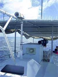 Boat with speakers, IR transmitter/detecter, and gas gun.